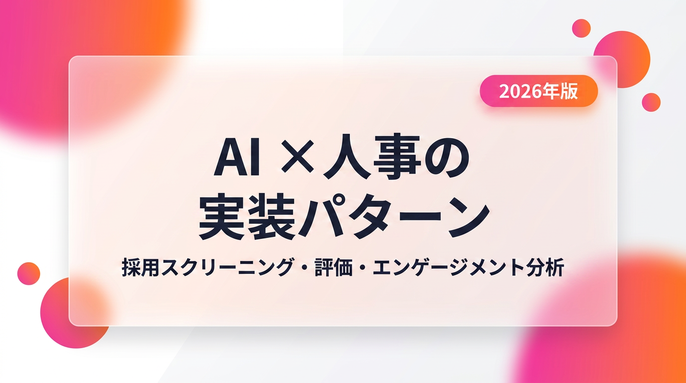 [^1]: dfplus.io 「AIを活用した履歴書スクリーニング方法」 https://dfplus.io/iq/blog/ai-hr-guide-resume-screening [^2]: Eightfold 「6 bold predictions for AI and talent in 2026」 https://eightfold.ai/blog/predicitions-ai-in-hr-2026/ [^3]: SAP News 「SAP SuccessFactors 1H 2026 Release」 https://news.sap.com/2026/04/sap-successfactors-1h-2026-release/ [^4]: タレンタ 「JCB HireVue AIアセスメント導入事例」 https://www.talenta.co.jp/hirevueai-jcb_20260402/ [^5]: Warden AI 「NYC Local Law 144 Compliance Guide 2026」 https://www.warden-ai.com/resources/hr-tech-compliance-nyc-local-law-144 [^6]: Crowell & Moring 「AI and Human Resources in the EU: a 2026 Legal Overview」 https://www.crowell.com/en/insights/client-alerts/artificial-intelligence-and-human-resources-in-the-eu-a-2026-legal-overview [^7]: SmartHR 「HRBrainとAPI連携」 https://smarthr.jp/release/15359/ [^8]: Josh Bersin 「Gloat Enters The Crowded War For AI Agents in HR」 https://joshbersin.com/2026/03/gloat-enters-the-crowded-war-for-ai-agents-in-hr/ [^9]: renue 「エンゲージメントサーベイ×AI活用ガイド 2026年版」 https://renue.co.jp/posts/engagement-survey-ai-pulse-survey-sentiment-analysis-guide [^10]: Perceptyx 「Employee Experience Trends 2026」 https://blog.perceptyx.com/employee-experience-trends-what-the-data-says-about-2026 [^11]: デジタルツール研究所 「AI解析で離職率25%減」 https://digitool-lab.com/blog/hr-turnover-prediction-ai [^12]: 日経BP 「事例表彰で分かった人的資本経営×AIの現在地」 https://project.nikkeibp.co.jp/HumanCapital/atcl/column/00015/102900122/ [^13]: Jicoo 「AI面接官導入の課題と対策」 https://www.jicoo.com/magazine/blog/ai-interviewer-risks-and-solutions