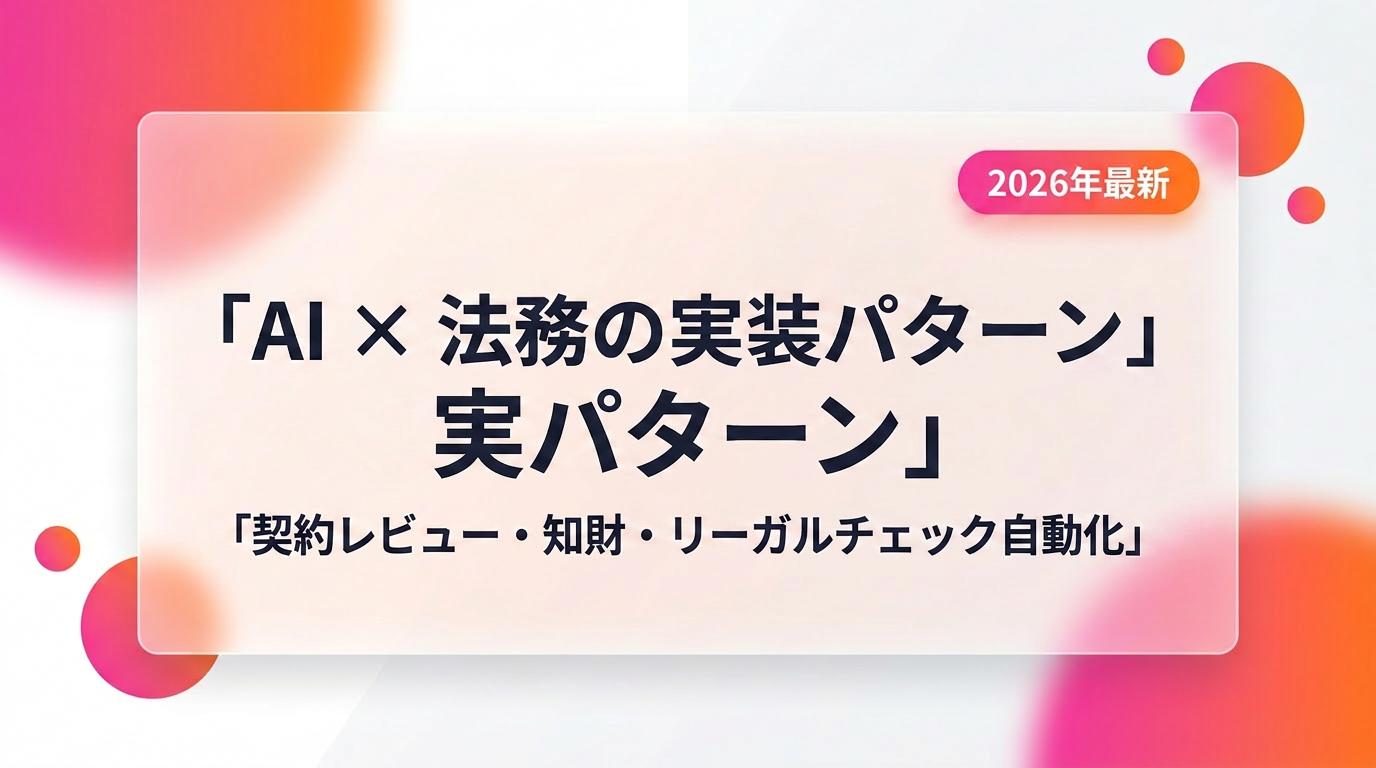 このシリーズではVertical AI、つまり業務領域ごとに尖らせたAIの実装パターンを取り上げていきます。第1弾は法務。世界の大手法律事務所がHarveyを全社展開し、日本の四大事務所もAI環境を全弁護士に配り終えた今、企業法務部が次に何を考えるべきかを整理します。
