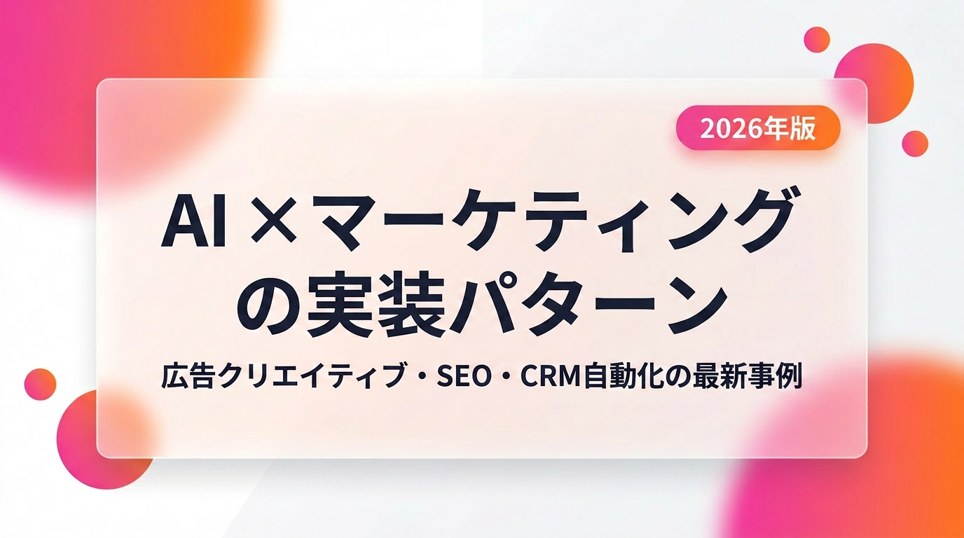 この記事では、AI×マーケティングの実装を4領域(広告クリエイティブ、SEO/AIO、CRM自動化、ハイパーパーソナライゼーション)に分けて、いまどのツールがどこまで使えて、どこに落とし穴があるのかを整理します。読んだ後に「自社では何から始めるか」が決められる粒度で書きました。