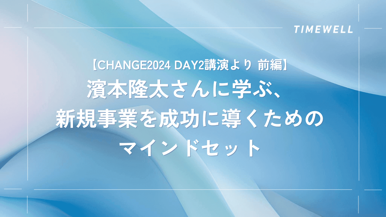 皆さん、こんにちは。株式会社TIMEWELLそしてCHANGEの事務局を務めております濱本と申します。今日は、私がCHANGEで講師を務めさせていただいた際に紹介した、事業開発の基礎的なポイントについてお話しします。特に、皆さんが陥りがちな点や、私がよく目にする課題なども含めて、お話しできればと考えております。