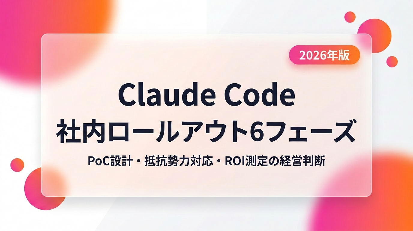 この記事では、Claude Codeを「ライセンスを配った状態」から「日常的に成果が出ている状態」まで持っていくための6フェーズを、実装タスクリスト・期間・成果物・KPIまで含めて解説します。DeloitteがClaudeを47万人に展開した話[^1]、Mercariがエンジニアの80%にAIコーディングアシスタントを浸透させた話[^2]、DBS Bankが2万5千人にDBS-GPTを配布した話[^3]、それからKlarnaが大胆に振り切ってからAIを巻き戻した話[^4]も織り交ぜていきます。