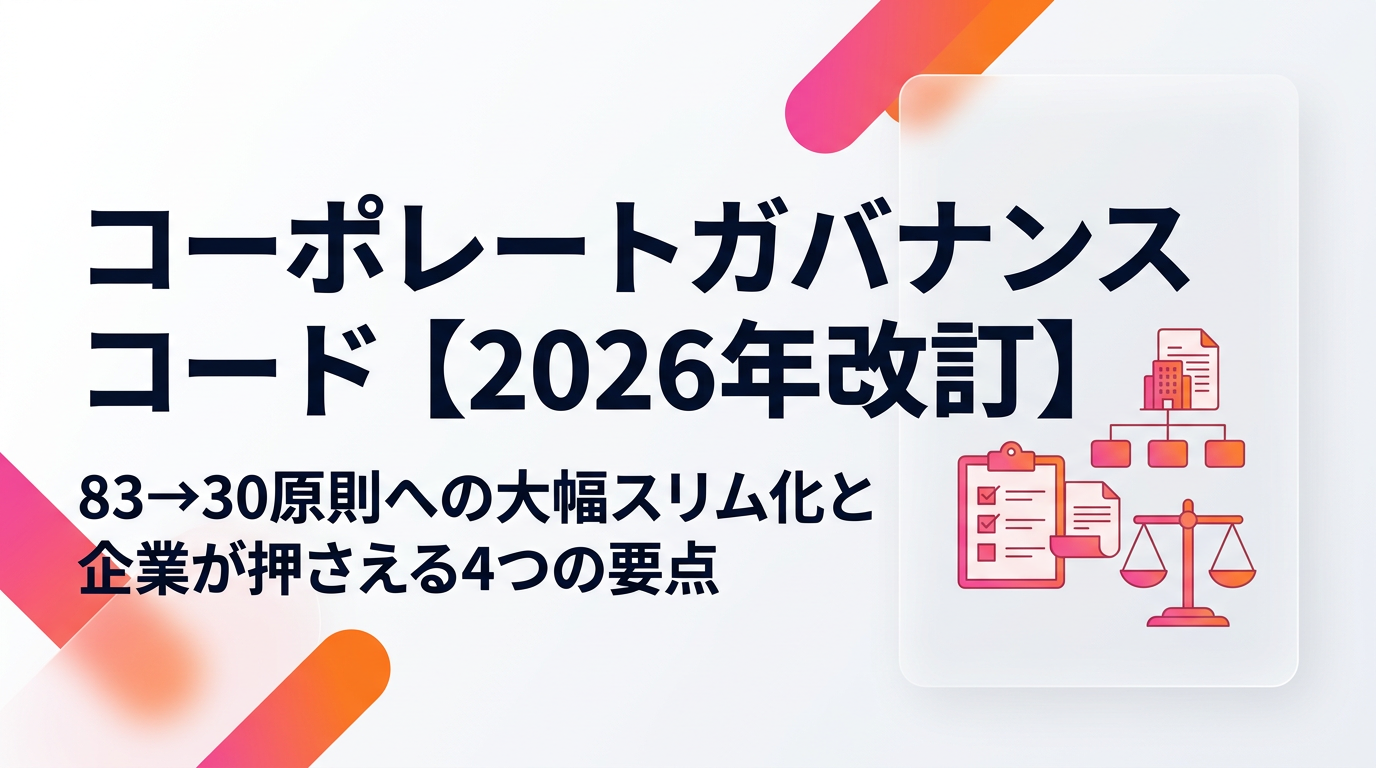 2026年2月26日、金融庁と東京証券取引所は「コーポレートガバナンスコード(CGコード)」の改訂案を公表しました。4月10日からはパブリックコメントも受付開始。いよいよ正式適用が近づいています[^1][^2]。
