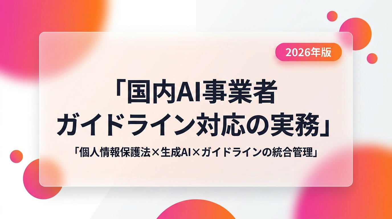[^1]: 総務省・経済産業省「AI事業者ガイドライン(第1.1版)」令和7年3月28日 https://www.soumu.go.jp/main_content/001002576.pdf [^2]: 経済産業省「AI事業者ガイドライン(第1.2版)」令和8年3月31日 https://www.meti.go.jp/shingikai/mono_info_service/ai_shakai_jisso/20260331_report.html [^3]: 内閣府「AI法 全面施行 — 次なるフェーズへ」2025年10月3日 https://www.cao.go.jp/press/new_wave/20251003.html [^4]: 個人情報保護委員会「生成AIサービスの利用に関する注意喚起等について」2023年6月2日 https://www.ppc.go.jp/news/careful_information/230602_AI_utilize_alert/ [^5]: 経済産業省「AI事業者ガイドライン(第1.1版)概要」令和7年3月28日 https://www.meti.go.jp/shingikai/mono_info_service/ai_shakai_jisso/pdf/20250328_2.pdf [^6]: ailead Blog「AI事業者ガイドラインv1.2完全解説」2026年 https://www.ailead.app/blog/ai-governance-guideline-v12-agent-regulation-2026 [^7]: 経済産業省「AI事業者ガイドライン(第1.1版)別添(付属資料)」令和7年3月28日 https://www.meti.go.jp/shingikai/mono_info_service/ai_shakai_jisso/pdf/20250328_3.pdf [^8]: 伊藤忠テクノソリューションズ「AI事業者ガイドラインをザックリ理解しておこう」 https://www.ctc-g.co.jp/keys/blog/detail/ai-business-guidelines-key-points [^9]: 三浦法律事務所「Data and Digital Insights Vol.6 生成AIの活用と法整備の現在」 https://note.com/miuraandpartners/n/n0949f5f0f022 [^10]: 牛島総合法律事務所「個人情報保護法改正の追加検討事項の公表(2025年1月22日)」 https://www.ushijima-law.gr.jp/client-alert_seminar/client-alert/20250123appi/ [^11]: PwC Japan「AIガバナンスに関するコラム 想定されるリスクと各国の法規制」 https://www.pwc.com/jp/ja/knowledge/column/ai-governance/ai-governance-risk.html [^12]: NTTデータ先端技術「やってみよう!PIA(プライバシー影響評価)!」 https://www.intellilink.co.jp/column/security/2022/121900.aspx [^13]: 東京海上ディーアール「PIA(プライバシー影響評価)の現在地と課題」 https://www.tokio-dr.jp/publication/report/riskmanagement/riskmanagement-393.html [^14]: 大和総研「AIガバナンスとは?AIガバナンス構築の4つの要所を解説」 https://www.dir.co.jp/world/entry/solution/ai-governance [^15]: NTTデータ「りそなホールディングスと共創する、AIガバナンス構築の取り組み」2025年7月 https://www.nttdata.com/jp/ja/trends/data-insight/2025/0707/ [^16]: hipro-job「AI事業者ガイドラインとは。罰則は?企業が知っておくべきポイントは?」 https://biz.hipro-job.jp/column/corporation/ai_guidelines_for_business/ [^17]: 日本弁護士連合会AI戦略ワーキンググループ「弁護士業務における生成AIの利活用等に関する注意事項」2025年9月 https://prtimes.jp/main/html/rd/p/000000364.000033386.html