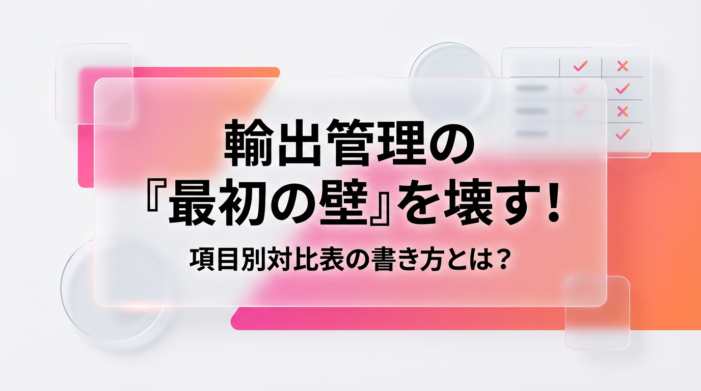 「海外の取引先から"項目別対比表"を求められたけど、これって一体何?」「輸出管理って言葉は聞くけど、何から手をつければいいのか分からない…」「該非判定という言葉が難しそうで、アレルギー反応が出てしまう…」