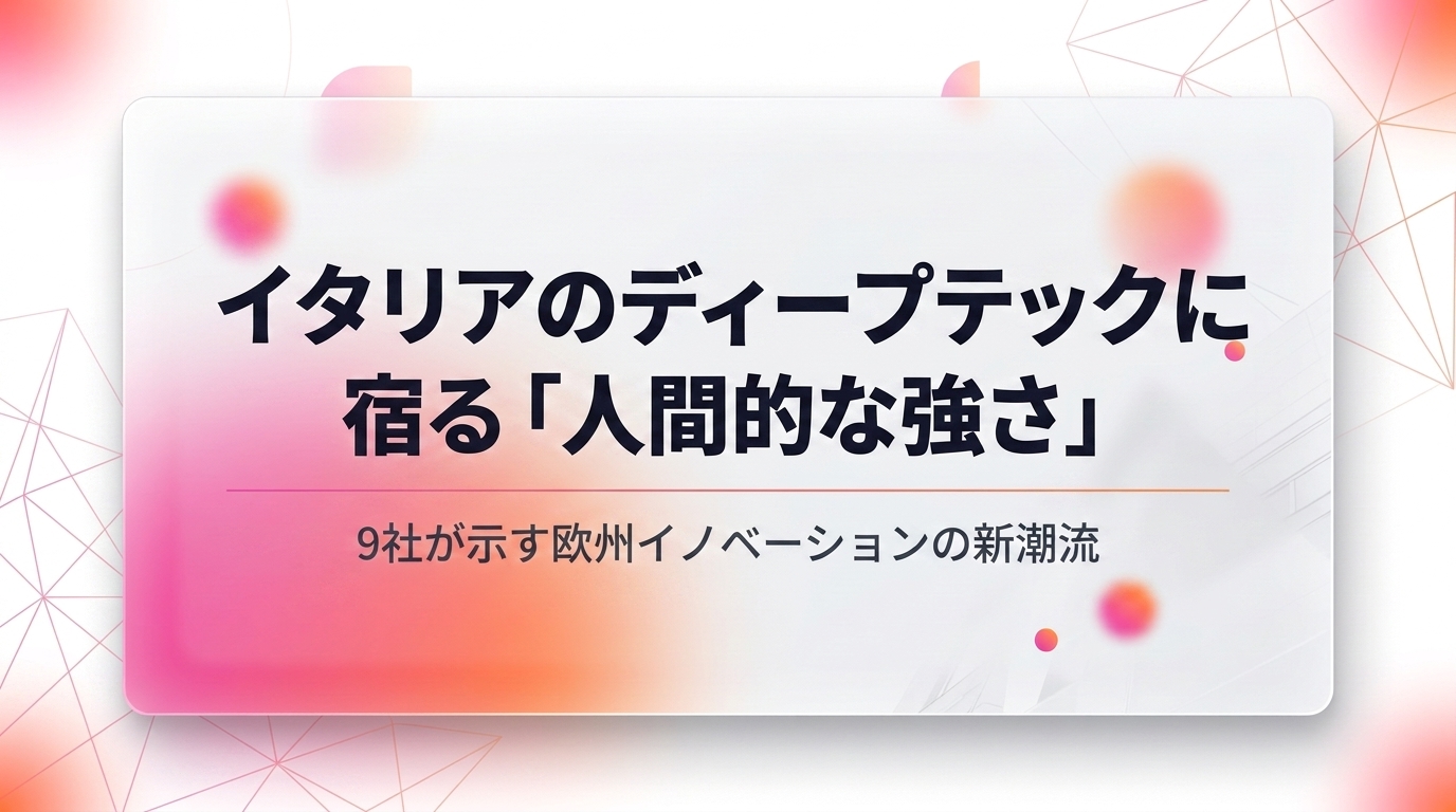 9社のピッチを聞き終えて、私が整理したのはこうです。「イタリアのディープテックは、技術の抽象度と人間的ナラティブの両方を持っています」。