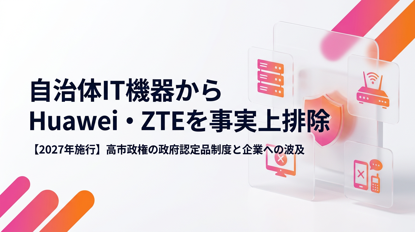 一見、地味な行政の話に見えます。ただこれ、日本の経済安全保障の地図をかなり書き換える一手です。なぜなら対象は全国1700あまりの自治体が日常業務で使うPC・サーバー・クラウド。しかも認定制度の仕組み上、HuaweiやZTEといった中国製品は事実上、調達網から消えます。