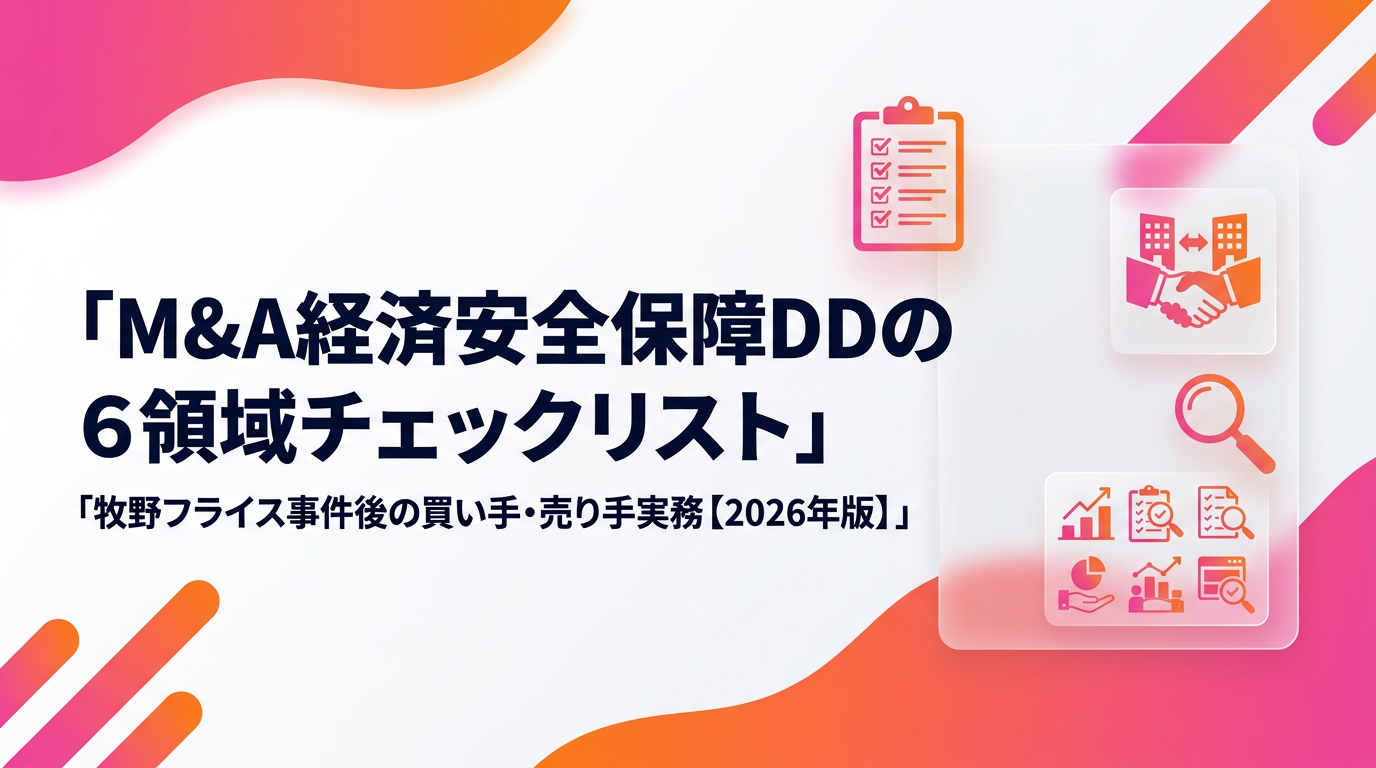 2026年に入ってから実務家の間で一気に関心が高まった「経済安全保障デューデリジェンス」。従来のDDとの違い、必ず押さえるべき6領域、買い手側・売り手側それぞれの実務ポイントを、整理してお届けします。