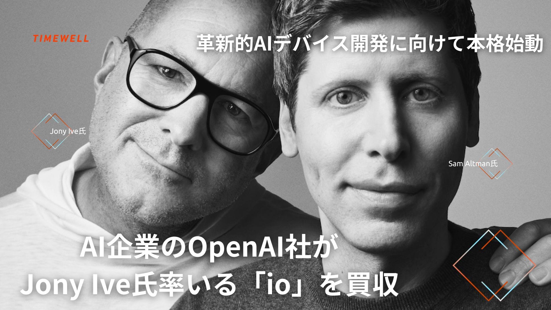 5月21日に、iPhoneやiPodなど数々のApple製品のデザインを担当してきたJony Ive氏が立ち上げたAIハードウェア スタートアップの「io」を、AI企業のOpenAIが買収すると発表しました。買収によりioの約55名のハードウェアエンジニア、ソフトウェア開発者、製造専門家はOpenAIに加わることとなります。さらに、買収後初のデバイスが2026年にも発売される予定で、この強力なタッグからどのようなAIデバイスが生み出されるのか世界が注目しています。